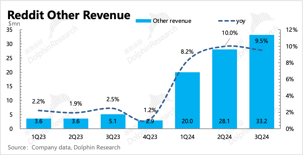 此外,进入数智化时代后,Reddit最核心的数据资产商业价值也正在被挖掘。截至目前,Reddit已先后将平台的内容数据授权给谷歌、OpenAI用作大模型的训练,以及授权给一些中小平台用于用户行为的数据分析。按照合约约定,Reddit与谷歌、OpenAI分别签订的三年期合同价值约2亿美元、1.35亿美元。